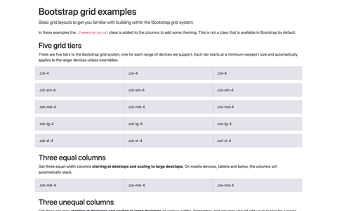 Multiple examples of grid layouts with all four tiers, nesting, and more.